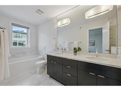 Welcome to 49 Ryder Avenue, a luxurious Net Zero Terra View home in Guelphs prestigious Hart Village where sustainability meets comfort and style! Designed with energy efficiency at its core, this home is equipped with rooftop solar panels that generate clean power and help lower monthly utility costs. The open-concept main floor is bright and modern, with pot lights throughout and a chefs kitchen featuring stainless steel appliances, a gas stove, large island, and walk-in pantry. The dining area opens to a fully fenced backyard with a covered deck and concrete patio - perfect for BBQs or morning coffee, while the cozy living room with an electric fireplace offers the ideal place to unwind. Upstairs, you'll find a sun-filled family room, three generously sized bedrooms, and a convenient second-floor laundry. The primary suite includes a walk-in closet and a spa-inspired ensuite with a soaker tub and double vanity. Custom built-ins throughout the home maximize storage and functionality. The fully finished basement is a standout feature: a legal 1-bedroom accessory apartment with its own private entrance, full kitchen with island, stainless steel appliances, bright windows, 3-piece bath, and in-suite laundry. This space is ideal for extended family, guests, or generating rental income - and can offset your mortgage by an estimated $250,000-$300,000, making this luxury home more attainable than you might think! Additional highlights include a sprinkler system for effortless lawn care, no sidewalk (extra parking and easier snow removal), driveway parking for up to six vehicles, and energy-efficient construction for year-round comfort. Located close to parks, top-rated schools, scenic trails, everyday amenities, and the University of Guelph. With quick access to Highway 6 this home offers thoughtful design, future-ready living, and a lifestyle that balances luxury with practicality.