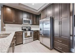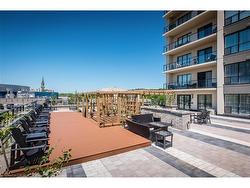 Welcome to RiverHouse, one of downtown Guelph's most sought-after condominium residences. This stylish turnkey suite pairs luxury finishes with an urban lifestyle just steps from the GO station, Sleeman Centre, Speed River and the city's best shops, dining, and downtown amenities. Inside, the open-concept layout is bright and inviting, with large windows and a private balcony showcasing panoramic city views. The kitchen features rich espresso cabinetry, granite countertops, stainless steel appliances, and an island with bar seating that flows seamlessly into the living and dining area. The living room offers elegant crown moulding, a fireplace feature, and sliding doors to the balcony - an ideal space for morning coffee or relaxing above the city. Both bedrooms are generously sized, with the primary suite offering floor-to-ceiling windows, a walk-in closet, and a spa-like ensuite with a glass-enclosed shower and stone vanity. A second full bathroom with a frameless glass shower serves guests and the secondary bedroom. Additional highlights include in-suite laundry, 2 underground parking spaces with an EV rough-in set up for future installation and a storage locker. RiverHouse provides a refined lifestyle with amenities such as a fitness centre, party room equipped with a bar/lounge, large outdoor terrace, and guest suite, all within a secure and well-managed building. A rare opportunity to experience upscale condominium living in the heart of Guelph's vibrant downtown core. All furniture can be purchased, see realtor remarks for further details.