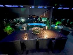 Stunning Home on a Prime West Mountain Court – A True Oasis!Welcome to this exceptional property nestled on a quiet court in the highly sought-afterWest Mountain area. From the moment you arrive, you’re greeted by a grand double-doorentry, soaring 2-storey foyer, elegant chandelier, oak staircase with wrought ironspindles, and gleaming 24”x24” tiles.The main level features a seamless open-concept layout with a spacious dining and familyroom adorned by a modern fireplace. The gourmet kitchen is a showstopper—complete withbuilt-in stainless-steel appliances presently professionally wrapped in white vinyl(including a water line for the fridge), gas stovetop, crown molding, quartz countertopsand backsplash, oversized island, pot lights. Sliding doors lead to a breathtaking,fully fenced backyard that radiates a Caribbean resort-style vibe.Upstairs, you’ll find a luxurious primary suite that includes a walk-in closet and aspa-like ensuite with double vanity, soaker tub, and separate shower. Along with threegenerously sized bedrooms—two with walk-in closets and a completely renovated five piecebathroom. This home is completely carpet-free for easy maintenance and a modern feel.The beautifully finished in-law suite in the basement offers its own eat-in kitchenette,stylish 4-piece bath, two bedrooms, and a cozy family room with fireplace—perfect forextended family or rental potential.The exterior is finished in an elegant combination of stucco, stone, and brick. Stepoutside to your personal paradise: an inground heated saltwater pool, hot tub, stainlesssteel outdoor kitchen with gas BBQ under a covered patio, space for a 12-seat diningtable, cozy lounge area, and a dedicated gas fire pit zone for evening gatherings.Room Sizes are Approximate. Realtor is one of the Sellers.