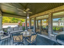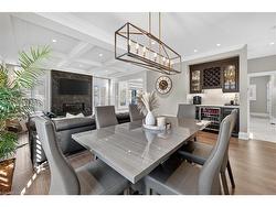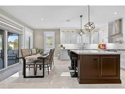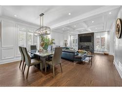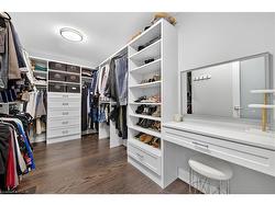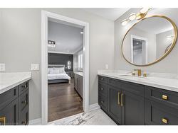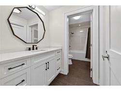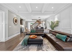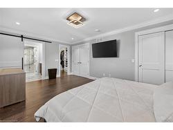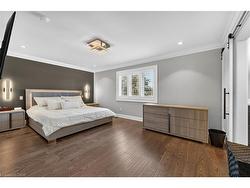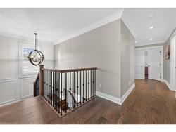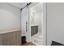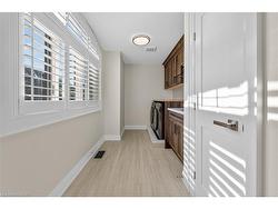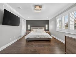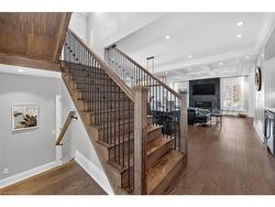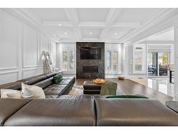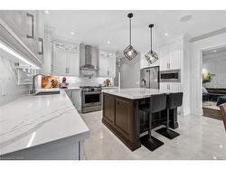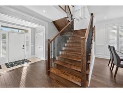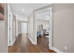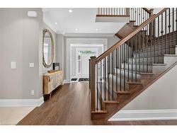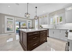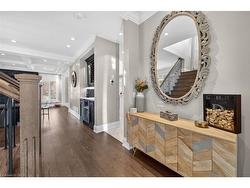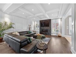 Prepare to be impressed by this meticulously crafted, fully custom 3-bedroom, 2.5-bathroom residence offering 2,531 sq ft of luxurious living on a generous 50x108 ft lot. From the moment you arrive, the home’s full brick and stone façade, arched windows, and covered porch speak to the quality and pride of ownership throughout.Inside, every detail is elevated — engineered hardwood and porcelain tile span the entire home. Solid wood interior doors, coffered ceilings, pot lights (including on all 4 sides of the home’s exterior), and crown moulding define each space with sophistication. The kitchen is an entertainer’s dream, complete with custom cabinetry, quartz countertops, high-end appliances, in-ceiling speakers, and a spacious island. It opens effortlessly to a dining area and large living room anchored by a floor-to-ceiling stone gas fireplace and built-in wet bar.The primary suite is a sanctuary, offering a large walk-in closet with custom cabinetry and a dedicated makeup station. The ensuite bath includes a double vanity, quartz countertops, and a private water closet. Upstairs bathrooms also feature quartz surfaces and private toilet rooms for added convenience.A wide staircase enhances flow, and thoughtful extras include central vac with in-wall hose systems on every level, closet lighting throughout, and California shutters.Step outside to a covered back porch and fully fenced backyard where freshly planted cedars promise enhanced privacy in the seasons to come. The unfinished basement — with its own private side entrance and insulated subfloor — offers endless possibilities. With a double-car garage and four-car driveway, this property checks every box for luxury, comfort, and long-term livability.