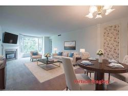 Spacious and bright, this 2-bedroom, 2-bath condo in the heart of Ancaster’s Meadowlands offers over1,150 sq ft of comfortable living with a smart layout and plenty of natural light. The living room featuresa cozy gas fireplace and opens to a private balcony with a quiet treed view — a rare, calming backdropin the community. The primary bedroom includes a full ensuite with a soaker tub, while the secondbathroom is finished with a walk-in shower. Freshly painted walls add a modern touch, with plenty ofroom to personalize.Set on the preferred second floor, this home provides a safe and accessible option for downsizers andretirees alike. The well-managed building includes an underground parking space with a private storagelocker located directly behind, as well as amenities such as a car wash bay, workshop, seasonalstorage, party room, gazebo, and ample visitor parking. A walking path just steps from the propertyleads to a landscaped reservoir area with trails and greenery, perfect for a morning walk or eveningstroll. Condo fees conveniently include water, building insurance, and all exterior maintenance.Located just steps from shops, restaurants, Costco, Shoppers Drug Mart, and more, this condocombines everyday convenience with peace and quiet — an excellent opportunity in a highlysought-after Ancaster location.