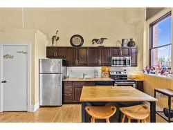 Welcome to the historic Stinson School Lofts, where heritage charm meets modern living. This bright and airy studio loft features soaring 13 foot ceilings, original hardwood floors, and oversized windows that flood the space with natural light. Designed for convenience and character, this open concept suite offers in unit laundry, all major appliances, and an assigned parking spot in the rear lot. Perfect for students, professionals, or down-sizers, this unique loft sits steps from the Bruce Trail, GO Station, and public transit with direct routes to McMaster University, Ancaster Meadowlands and Stoney Creek. Situated between three major hospitals and close to downtown, it’s an ideal spot for commuters or anyone seeking a walkable, connected lifestyle. Experience the charm of an 1800s schoolhouse reimagined into modern, boutique style living in one of Hamilton’s most iconic condo buildings.