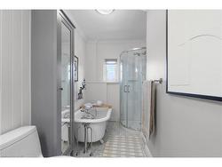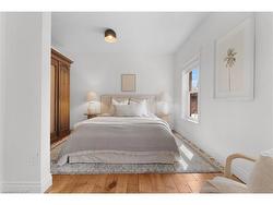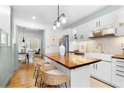 From the moment you step through the front door of 40 Emerald Street North, you’re greeted by timeless elegance and modern comfort in perfect harmony. The spacious foyer welcomes you with a full closet, solid wood Victorian doors adorned with vintage hardware, and recently refinished original pine floors that flow throughout the home. High ceilings crowned with ornate medallions, lofty baseboards, and exposed brick create a warm, historic backdrop. The kitchen is a showpiece. Bright white cabinetry, stainless steel appliances, polished wood island, farmer’s sink, herringbone backsplash, wainscoting, and a striking exposed brick wall blend beautifully with the home’s century-old soul. Spacious principal rooms and tall windows fill the main level with light. Convenient powder room finishes the main floor. Wood stairs lead you up to three bedrooms, each with original doors, trim, hardware, and floors, along with a modern, sparkling bath. Everywhere you look, the best of old-world craftsmanship and thoughtful updates unite in style. The fully finished basement offers incredible flexibility. A private in-law suite, teenage retreat, or guest space featuring a living area that can double as a bedroom, a sleek 3-piece bath, kitchenette, and direct laundry access. Step outside to a fully fenced backyard, perfect for relaxing or entertaining, and a rare detached garage for parking or storage. Updates incl. all wiring and plumbing (2019), 50 year shingles on main roof (2020), all new windows and limestone sills (2019), furnace (2019), water heater (2020). All of this in a walkable downtown location, just steps to shops, restaurants, parks, and transit. 40 Emerald Street North delivers heritage charm, modern updates, and unbeatable convenience. It’s a real gem in the heart of the city.