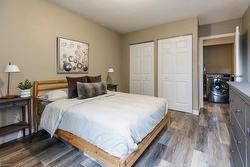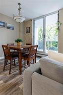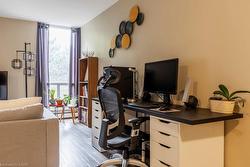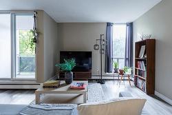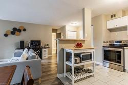 Welcome home to this bright, spacious one-bedroom condo, all set for you to move in! The open-concept layout is thoughtfully renovated, featuring ceramic and high-quality laminate flooring for a modern feel. The kitchen boasts updated cabinetry, stainless steel appliances, granite countertops, and a stylish patterned tile backsplash, complete with a breakfast bar for easy dining. The dining area flows seamlessly to a sunny balcony overlooking a wooded trail and scenic escarpment views. The bathroom has been updated with a sleek vanity and fully tiled bath and shower. The bedroom offers plenty of natural light through a floor-to-ceiling window and includes a roomy closet. In-suite laundry hookups add extra convenience. Enjoy a pet-friendly building with low fees that include heat, water, and more, plus your own parking space and storage locker. With walking trails, parks, and unbeatable proximity to shopping, transit, and highway access, this is an ideal spot for first-time buyers or downsizers alike!