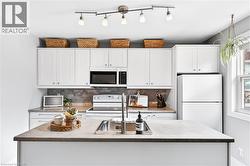 Welcome to this beautifully updated 3-bedroom home in the vibrant and family-friendly Kirkendall neighbourhood. Thoughtfully renovated and move-in ready, this property offers a blend of modern upgrades and timeless character. The main floor features a bright bedroom and a stylish 4-piece bathroom complete with ceramic tile and a classic cast-iron tub. The eat-in kitchen is a standout, showcasing soft-close cabinetry and newer appliances including dishwasher, microwave hood range, fridge, and flat-top stove. Perfect for both everyday living and entertaining. The second floor offers two additional bedrooms with a renovated 3-piece bath, while the unfinished basement provides flexible bonus space with upgraded plumbing (2022), ideal for a rec room, home office, gym, or storage. Extensive updates include eaves and soffits (2022), interlock driveway and walkway (2024), fencing and shed (2022), select new windows, and a digital thermostat. Fully fenced and ideally located just steps from Locke Street South, parks, schools, transit, fine dining, and entertainment, this home delivers lifestyle, comfort, and long-term value in one of Hamilton’s most sought-after communities. (id:27)