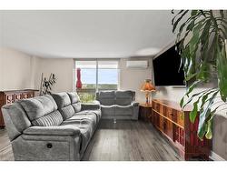 Step inside this rare two-level condo that feels more like a townhouse. On the main floor, you’re welcomed into a bright and functional layout finished with laminate flooring. The kitchen features ceramic tile flooring and a granite backsplash, offering both durability and style. From here, the space flows into the dining area and cozy family room—perfect for entertaining or everyday living. Just off the family room, open the patio doors to your private balcony, freshly painted and upgraded with electrical. It’s the perfect spot to enjoy summer evenings, morning coffee, or breathtaking sunsets over greenspace. Comfort is a priority on this level, thanks to a ductless AC/heat pump system that keeps the space cool in summer and warm in winter.Upstairs, you’ll find vinyl flooring across the top landing, then spacious three bedrooms with breathtaking views, paired with a full bathroom that offers ample storage. Two additional AC units in the bedrooms ensure the upper level stays cool during warmer months. Upgraded closet doors, including full mirrored doors on the main level, and custom shelving throughout add both function and modern flair.Outside your front door, the location is ideal. With quick highway access, it’s perfect for commuters, and for those who enjoy the outdoors, nearby walking trails invite peaceful strolls through the neighbourhood.The building itself is rich with amenities: a covered basketball court with nets, a community garden, bike storage, party room, children’s playground, and BBQs for residents. Pet-friendly and designed with open-air sky streets, the community has a welcoming, townhome feel.For added convenience, this unit includes one exclusive parking spot and a storage locker—making it as practical as it is unique.With its rare upgrades, thoughtful improvements, and two-story design, this condo is truly one of a kind.