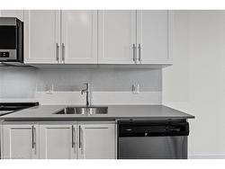 Beautiful, newly constructed condominium in walkable downtown Hamilton close to amenities. Fabulous Kings Cross model offers 658 square feet. Open kitchen with white cabinetry, backsplash and stainless steel appliances. Living room with walk out to incredible 100 square foot balcony. Desirable den for home office or entertainment space. Spacious primary bedroom and 4 piece bathroom. In-suite laundry, stainless steel appliances and owned locker for storage. Building amenities include roof top patio for entertaining and BBQ, party room, gym and a concierge. Freshly painted and ready to move in! You will love the spectacular roof top views!