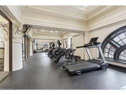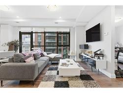 Bright, refined, and effortlessly contemporary - Suite 916 at the iconic Royal Connaught, a beautifully preserved piece of Hamilton's history in the heart of downtown, offers an exceptional standard of urban living. This nearly 900 sq. ft 1-bedroom + den residence features 9' ceilings and expansive floor to ceiling windows that span the full width of the suite, immersing the home in natural light and framing sweeping southeast views of the courtyard, city skyline, and escarpment. Showcasing one of the building's most desirable layouts, the suite includes extra height kitchen cabinetry with lower pull-outs, granite countertops, pot lights, solar-charged motorized blinds, and a walk-in closet with custom organizers. The bathroom has also been beautifully upgraded with granite counters and premium porcelain tile. Thoughtful enhancements throughout elevate both comfort and style. The spacious open den provides exceptional versatility - ideal as a home office, guest room, or potential second bedroom. Residents enjoy access to outstanding amenities, including a rooftop terrace perfect for sunsets and summer evenings, concierge service, a fully equipped fitness centre, media room and elegant party room. This unit also comes with an owned locker and an underground parking spot. Step outside and you're moments from Hamilton's finest cafes, shops, art galleries, and restaurants, along with the vibrant energy of James Street. Hospital services, transit and GO station connections are all within easy reach. If you're seeking a seamless blend of luxury, history, and urban convenience, this spectacular suite at the Royal Connaught might just be your perfect match.
