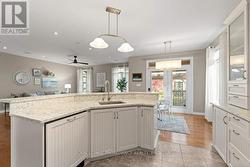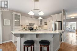 Style, comfort, privacy, tranquility... plus an in-law suite with private entrance! This two plus one bedroom bungalow is beautifully designed. On the main level, we have high ceilings, hardwood floors that flow through the living and dining spaces, updated lighting, and a fantastic layout. From the spacious entry we are guided past the separate dining room and guest bath to the expansive great room, overlooking the spectacular backyard, with tiered decking that extends the width of the home, pergolas, established gardens, water feature and natural gas BBQ. The kitchen offers quartz countertops, all appliances and ample storage. The primary suite is big enough for your king size bed and the ensuite has a glorious corner tub! From the great room we have a gracious staircase to the utility space and hobby nook, as well as the interior entrance to the in-law suite. This suite is bright and expansive, offering a full kitchen with three appliances, three-piece bath and separate bedroom. You'll be delighted with the separate entrance into the double car garage with man door and sidewalk. There is ample parking here with four additional driveway spaces. Baldwin Court is ideal for people who want quiet, privacy, but quick access to all of Kingston West's amenities, like Costco, Farm Boy and the K&P trail! (id:7525)