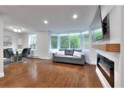 Welcome to luxury living at 103 - 35 Green Valley Drive, Kitchener. This splendid 2 bed, 2 bath residence combines modern sophistication with timeless comfort, offering a home you’ll be proud to call your own. Every detail has been thoughtfully curated, from the sleek renovations to the tranquil natural setting. Step inside and you’ll be greeted by bright, freshly painted interiors (2025) accented with upgraded baseboards, window frames, and door casings (2025), giving the unit a refined elegance. Lovely flooring pairs beautifully with newly added pot lights (2022) and updated light fixtures, creating a warm and inviting ambiance throughout. The spacious kitchen has been upgraded with a new countertop (2020), along with a newer stove and fridge (2023), complemented by a washer and dryer (2025). An elegant electric fireplace (2023) adds both comfort and style. The thoughtful renovations continue with renovated closets, a new electrical panel (2022), and upgraded outside windows (2024), ensuring both functionality and peace of mind. Beyond the unit itself, serenity abounds. The calming flow of the Grand River and the surrounding walking trails offer a daily retreat into nature. Conveniently situated near Highway 401 and Conestoga College, this residence provides easy access to major routes, while a nearby plaza offers groceries, dining, and retail options just steps away. Families will also appreciate its close proximity to schools, parks, and public transit. The building welcomes you with a secure entrance and inviting lobby, including variety of amenities, a gym with sauna, a quiet room, a party room, and a bike room. Surrounding parks provide safe and enjoyable outdoor spaces for both adults and children alike. This home offers more than just a place to live—it delivers a lifestyle of convenience, and elegance. We invite you to experience the allure of this remarkable residence and make it your own.