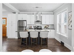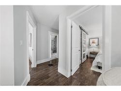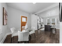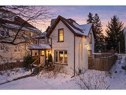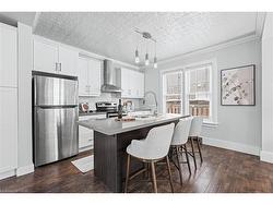 A rare opportunity in Kitchener’s historic Victoria Park neighbourhood-this beautifully restored century home has been fully updated from top to bottom while preserving the charm and character the area is known for. Located in the heart of the Innovation District, this home offers modern finishes, thoughtful design, and an exceptional walkable lifestyle. The open-concept main floor features 9-foot ceilings, laminate flooring throughout, and a bright living room highlighted by an exposed brick feature wall. The updated eat-in kitchen offers quartz countertops, a large centre island, stainless steel appliances, tile backsplash, and a spacious integrated dining area, making it ideal for both everyday living and entertaining. A convenient 2-piece powder room completes the main level.The upper level includes a versatile media nook or home office area, two spacious bedrooms, and a spa-like 4-piece bathroom with a separate soaking tub, tiled glass shower enclosure, and rain shower fixture. The primary bedroom features dual closets, including a walk-in with custom built-ins and a sliding barn door. Outside, the fully fenced backyard offers a large deck and shed, providing functional outdoor space. Additional highlights include 2 parking spaces and SGA-1 zoning, offering added flexibility for future use.Unbeatable location-minutes to the Victoria Park ION LRT Station and Downtown Kitchener. Walk to Victoria Park, Google, The Tannery, University of Waterloo Health Sciences Campus, School of Pharmacy, D2L, Deloitte, restaurants, cafés, shopping, and transit. Close to Grand River Hospital, St. Mary’s Hospital, and the Kitchener GO Station, with easy access to festivals, cultural events, and everything Downtown Kitchener has to offer. A rare blend of historic charm and modern living in one of Kitchener’s most sought-after neighbourhoods. An excellent opportunity to live-in or invest-perfect for owner-occupiers/those seeking a well-located property in the Innovation District.