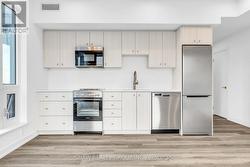 Discover an exclusive luxury corner condo unit in the prestigious Station Park Condos of Kitchener. This sophisticated 1-bedroom, 1-bathroom urban sanctuary combines contemporary aesthetics with everyday convenience. Enter a space where style seamlessly blends with comfort, featuring an open-concept living area bathed in natural light from floor-to-ceiling windows, offering panoramic city views. This condo boasts $17,000 in upgrades, including an upgraded kitchen, upgraded bathroom, window coverings in the bedroom, an entertainment package, and more. Storage unit and Underground Parking License included in purchase price! The gourmet kitchen is a culinary haven with state-of-the-art appliances, sleek countertops, and ample storage, making every meal a delightful experience. Retreat to the tranquil bedroom, complete with elegant touches, durable solid surface flooring, and plenty of closet space. The luxurious bathroom features high-end fixtures and a serene ambiance, perfect for unwinding after a busy day. Station Park offers unparalleled amenities, including a dedicated dog park, bowling alley, an amphitheatre, al fresco work stations, The Circuit-an innovative outdoor workout area-and expansive open spaces for relaxation, blending outdoor living with urban essentials. Seize the opportunity to elevate your urban lifestyle at Station Park Condos. Enjoy opulence and sophistication, strategically located near entertainment, fine dining, and efficient transit options. This 1-bedroom, 1-bathroom condo exemplifies contemporary refinement and modern luxury living. Vacant Possession Possible. (id:27)