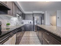 Welcome to 27 Valencia Ave, a stunning and meticulously maintained home nestled in one of Kitchener’s most sought-after neighborhoods — the vibrant and family-friendly Huron Park. Offering 1,429 square feet of stylish living space, this two-bedroom, two-and-a-half-bath home presents an exceptional opportunity for first-time home buyers and professionals alike. As you arrive, you’re greeted by a covered porch and a long private driveway leading into the entry-level, which features a convenient powder room, utility room, and direct access to the garage. The main floor showcases a beautiful open-concept layout with an upgraded kitchen that boasts granite countertops, modern black stainless steel appliances, and an abundance of cupboard and counter space. The bright and airy great room and dining area are complemented by large windows that flood the space with natural light and elegant laminate flooring throughout. From the dining area, step out onto a spacious balcony—a perfect spot to relax, entertain, and enjoy the sunshine with loved ones. Upstairs, you'll find two generously sized bedrooms, including a primary suite with a walk-in closet and a private ensuite bath. An additional full bathroom and convenient upstairs laundry complete this functional and thoughtfully designed upper level. Located just minutes from top-rated schools, RBJ Schlegel Park, grocery stores, pharmacies, public transit, walking trails, and the Huron Natural Area, this home also offers easy access to Highway 401—making it ideal for commuters. Don’t miss your chance to own this beautiful home in one of Kitchener’s fastest-growing communities. Book your private showing today!