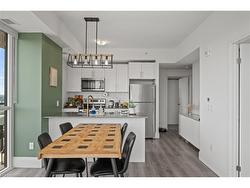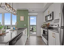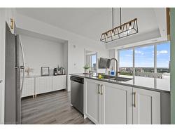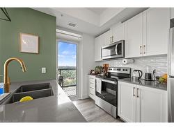 Luxury Corner Unit at Garment Street Condos-Experience elevated urban living in the heart of Kitchener’s Innovation District. This bright, south-facing corner unit offers 2 bedrooms, 2 bathrooms, a locker, and one underground parking space—perfectly blending style and convenience. Floor-to-ceiling windows and an open-concept layout flood the 811 SF space with natural light. The modern kitchen features quartz countertops, a breakfast bar, subway tile backsplash, and premium appliances, flowing seamlessly into the integrated dining area and living room. Step out onto your extra-wide private balcony and take in panoramic city views. The spacious primary suite boasts a walk-in closet and a stylish 3-piece ensuite, while the second bedroom and full 4-piece bath provide flexibility for guests or a home office. Laminate flooring and in-suite laundry add to the move-in-ready appeal. Garment Street Condos offers exceptional amenities: rooftop pool, fitness centre, yoga studio, basketball court, BBQ terrace, co-working spaces, media room, pet run, concierge service—and high-speed internet is included in the condo fees. Situated just steps from top employers like Google’s Canadian HQ, Communitech, Miovision, Vidyard, D2L, and ApplyBoard, and minutes to the University of Waterloo’s Pharmacy School and new School of Medicine, this location is unmatched for professionals and investors alike. Walk to Victoria Park, the LRT Central Station, the GO Train, and downtown Kitchener’s top restaurants, cafes, breweries, and boutiques. Whether you're a professional, investor, or seeking low-maintenance luxury, this is the one. Live where tech, culture, and convenience meet—book your private showing today!