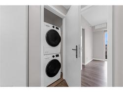 Welcome to unit 307. This rare 2-bedroom, 2-bath condo located in the heart of Kitchener. The unit is 823 sq. ft and the largest 2-bedroom unit in the building. Located on the podium level, you can skip the elevator and access your unit directly from your owned parking spot on the 3rd floor. The layout boasts a spacious primary bedroom with a walk-in closet, while the second bedroom features double closets, all fitted with upgraded organizers. Additional highlights include automated powered roller shades, private balcony and in-suite laundry. The condo is close to it all- LRT access, Conestoga College, government buildings and great restaurants. Don't miss out on this rare opportunity to own a spacious unit in one of Kitchener’s premier buildings!