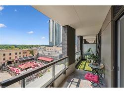 ***Reduced Price to $379,900***Located in the heart of Kitchener Downtown right beside the Kitchener City Hall, live close to all the festivals, restaurants, cafes and all the Kitchener Downtown has to offer. Balcony has a nice view of the patio from the across the street restaurants. Public transit is only steps away from front door way. This 1 bedroom plus den unit offers a nice clean place to live with upgraded kitchen island and other extras including in unit laundry, The 110 sqft balcony offer a nice outdoor space and exemption amenities that make this a great condo building. With dining terrace, roof top track for runs, fitness zone with spin room, outdoor yoga, dog wash station, BBQ space and many more. Make this your next home.