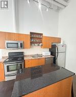Bright, stylish loft just steps from Google and University of Waterloo School of Pharmacy in Kitcheners vibrant Innovation District! An entire wall of south-facing windows floods the space with natural light, complemented by soaring 13ft ceilings, polished concrete floors, and a modern open-concept design. The kitchen features a granite island, sleek cabinetry, and stainless steel appliancesperfect for cooking and entertaining. Additional perks include in-suite laundry, a storage locker, parking, and access to a rooftop patio with BBQ. Walk to the LRT, the Tannery, Victoria Park, and countless shops and restaurants. Dont miss out on this one-of-a-kind opportunitywhether youre looking to invest or call this home! (id:7525)