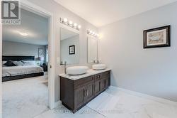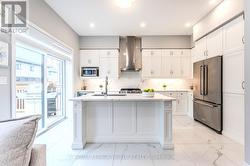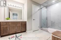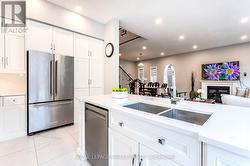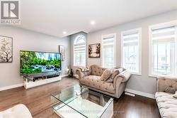 Dare to be impressed in The "Rahi" Model boasting over 3444sqft of finished living space w/a 3 bed + 2 bed, 3 1/2 bath floor plan w/upper family room and a host of premium features. IMPRESSIVE 8 FOOT TALL FRONT ENTRY DOOR, setting the tone for the lavish interiors that await. The designer kitchen is adorned with upgraded Heirloom-style maple cabinetry, soft-close cabinets, and a QUARTZ COUNTERTOP & BACKSPLASH THAT EXUDE SOPHISTICATION. Enhancing its allure is the island w/upgraded corner posts, a wine fridge, gas stove with an upgraded stainless chimney hood fan, and in-floor heating. A 6 ft patio door featuring a transom window above, inviting natural light and seamless indoor-outdoor living. Gather around the NAPOLEON GAS FIREPLACE IN THE GREAT ROOM, illuminated by pot lights strategically added for ambiance. The opulence extends to every bathroom, where UPGRADED QUARTZ COUNTERTOPS AND MAPLE SHAKER CABINETS create a spa-like atmosphere. Revel in the luxury of a 10 ft main floor ceiling height, 12x24 CERAMIC TILE FLOORING in the foyer, kitchen, and bathrooms, alongside maple hardwood flooring in the Great room, dining room, family room, and upper hallway. Ascend the MAPLE HARDWOOD STEPS ADORNED WITH BLACK WROUGHT IRON SPINDLES, leading to an upper family room for additional relaxation and leisure. Retreat to the generously sized primary bedroom which features a walk-in closet. The master ensuite, a sanctuary featuring DOUBLE VESSEL SINKS, A FREESTANDING TUB, AND A GLASS-ENCLOSED SHOWER with a rain shower head, EPITOMIZING INDULGENCE AND STYLE. Professionally finished by the builder, the basement offers additional living space with a 9 ft ceiling, two bedrooms, and a 3 pc bathroom, illuminated by two Egress windows that flood the space with natural light. Outside, unwind in the fully fenced backyard, complete with a retractable awning and deck, perfect for dining and entertaining. (id:7525)