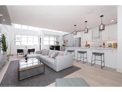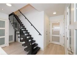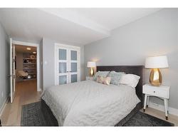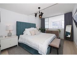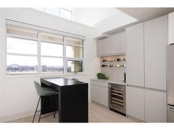 Step into luxury in this bright 2-bedroom, 2.5-bathroom suite! This southwest-facing executive penthouse features soaring two-story windows that flood the space with natural light and offer fabulous views across the city as well as an airy, fresh ambiance throughout. The main floor living space is stunningly updated with white oak floors, quartz countertops, built-in media and bar areas, and is designed for you to entertain in style or relax in an extremely comfortable and beautiful environment. Other main floor features include double closets at the front entry, a storage room or pantry space off the kitchen, and a handy 2pc main floor bath. The 2nd level hosts a spacious primary suite that includes an ensuite with a separate shower and tub, as well as a walk-through closet creating a perfect private retreat. The 2nd bedroom, full main bath, reading nook, and laundry room. Premium building amenities include a fitness centre, private theatre, party room, boardrooms, and a rooftop BBQ terrace with panoramic city views — ideal for summer evenings and gatherings. Experience penthouse living at its finest all just steps from Victoria Park, top dining spots, transit, hospitals, and the best of downtown entertainment.