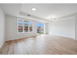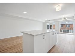 Brand new, ready now, and available for a quick closing, this gorgeous 3 bedroom, 2.5 bath condo townhouse is located in sought-after Harvest Park in Doon South. The kitchen is sure to impress with plenty of cabinetry, a large island, quartz countertops, and stainless appliances. The great room is of very generous proportions and sliders from the dining area lead to a spacious deck. On the way to the upper level, you'll love the bonus lounge that is the perfect spot for a family room or home office. Upstairs are 3 bedrooms plus a laundry room. The primary suite features a second, private balcony , a 3 piece bath and lots of closet space. A main 4 piece bath completes this level. One surface parking space. Condo fees include building and grounds maintenance as well as High Speed Internet. This is an excellent location - near Hwy 401 access, Conestoga College and beautiful walking trails. SALES CENTRE LOCATED at 158 Shaded Cr Dr in Kitchener - open Monday to Wednesday, 4-7 pm and Saturday, Sunday 1-5 pm .