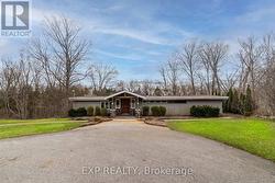 Welcome to 6165 19th Ave., Markham a truly unique country estate offering the best of both worlds: ultimate privacy and serene natural surroundings, all within minutes to modern conveniences. This warm and inviting 4-bedroom, 4-bathroom bungalow inspired by Frank Lloyd Wrights signature style is thoughtfully integrated into the landscape. Floor-to-ceiling windows along the back of the home flood the interior with natural light and provide breathtaking views of the wooded rolling lot and creek. The recently updated kitchen features poured-in-place concrete countertops and rich wood cabinetry. A built-in wall oven and a spacious walk-in pantry make it both beautiful and functional. And the kitchen boasts stunning views of the property including wildlife such as deer, foxes, turkeys, and a great heron. The great room is a showstopper, with soaring 20+ ft ceilings, exposed wooden beams and a natural granite stone wood-burning fireplace perfect for family gatherings or quiet romantic evenings in. The primary suite is a tranquil retreat, complete with a steam feature and jetted soaking tub in the ensuite and a wood burning fireplace. The home is fully wired with CAT-5 making it ideal for modern living. With two wood-burning fireplaces and an additional gas fireplace, warmth and comfort are never far away. Outside, the detached three-car garage with workshop and loft is a dream for hobbyists or those seeking extra space. With utilities already in place, the loft offers untapped potential and can be transformed into a games room, home office, or garden suite. The oversized patio and deck are perfect for entertaining including summer nights around the built-in gas firepit. Natural gas service, a rare feature for a country property, adds value and efficiency. Whether you're seeking a forever family home or a weekend escape, this one-of-a-kind property delivers charm, character, and lifestyle. Dont miss your chance to own this exceptional gem in Markham's countryside. (id:27)