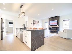 Welcome to 134 Aiken Street in Meaford, a stunning newly built 3 bedroom, 1 bathroom detached raised bungalow boasting 1,054 square feet of meticulously designed living space on the main level, set on a desirable corner lot. Step inside to an open-concept kitchen featuring sleek black stainless-steel appliances, gleaming quartz countertops, a dramatic waterfall island, custom cabinetry and a matching quartz backsplash. Enjoy soaring 9-foot ceilings on both the main level and basement, smooth finishes throughout, elegant hardwood floors, a cozy natural gas fireplace, front-load Electrolux washer and dryer, recessed lighting in the main living areas and soffit pot lights for added ambiance. Step out to the expansive elevated deck, ideal for entertaining. Superior construction includes Rockwool insulation in all exterior walls and the garage, a robust 200-amp electrical service and a 30-amp exterior plug ideal for trailers, RVs or EVs. The attached garage offers practical interior access with an automatic garage door opener for added convenience. With plumbing rough-in for a second bathroom and electrical roughed-in in the basement, it's ready for your personal finishing touches. Just steps from the Georgian Bay waterfront, near excellent schools and minutes from downtown Meaford, this home spares no expense with premium craftsmanship and features, making it an exceptional opportunity for modern living. Discover your dream home, move in and start living the lifestyle you deserve!