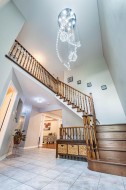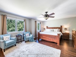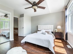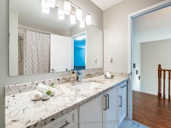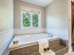 This stunning home and its quiet prime neighbourhood are a True Gift for you and your family. Your dream home with all the possibilities it holds, awaits in the heart of Milton's most desirable Beaty community. This detached home blends over 4,500 sqft of luxury, comfort, and stylish living spaces in every detail. Offering unmatched and exceptional community living located near top rated schools, shops, plazas, restaurants, Hwys, GO Station, parks, trails, and more! The beautifully upgraded exterior boasts a modern double garage with sleek black doors, a charming covered porch, and a tasteful light brick finish with elegant grey accents give the home a contemporary look. Step inside through elegant glass front door into a Grand Foyer with soaring ceilings, where a stunning designer Chandelier cascades gracefully from above, creating an unforgettable first impression! The main floor features a separate living and dining rooms, offering defined spaces for formal and special gatherings. While the open-concept family room flows smoothly into the upgraded gourmet kitchen and a large breakfast area with direct access to your own private backyard oasis backing onto a picturesque stretch of lush greenery, this calm space sets the scene for peaceful evenings where you can unwind on the patio or fire up the BBQ for unforgettable outdoor entertaining. As you make your way up the elegant curved staircase with rich brown wooden steps, natural light floods the upper hallway creating a bright and uplifting ambiance. This smooth transition leads you to 5 spacious bedrooms; feature a generously sized primary bedroom with a large walk-in closet and a luxurious 6-piece ensuite, along with 4 additional well-appointed bedrooms, jack and jill 2nd bathroom, and a 3rd bathroom offering comfort for the family. The finished basement offers versatility with upgraded flooring and a 5th bathroom. Carpet free and smooth ceilings throughout the home! Advanced water softener and filtration system!
