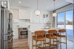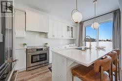 An exceptional opportunity to own a nearly new, freehold 2-storey End unit townhome offering 4 bedrooms and 3 bathrooms in the prestigious, family-oriented Bowes neighbourhood of Milton.Thoughtfully crafted by Mattamy Homes. Showcasing an elegant stone and stucco exterior, the home welcomes you into a refined foyer finished with porcelain tile flooring bright,open-concept layout. The main level features 9-foot Smooth ceilings, carpet-free flooring on both the main and second levels with premium finishes throughout. Sun filled kitchen features a large Whistler Polished Quartz island, quartz backsplash, high end stainless steel appliances and custom cabinetry. Expansive windows illuminate the living and dining spaces, creating an atmosphere that is both warm and effortlessly upscale ideal for entertaining or quiet evenings at home.A custom oak staircase leads to the upper level, where four spacious bedrooms offer comfort and privacy. The primary suite is a true sanctuary, complete with a walk-in closet and a spa-like ensuite with double vanity, upgraded quartz countertops, and a frameless glass shower. All interior doors have been upgraded for a refined finishes. The convenience of an upper-level laundry room further enhances everyday living. This meticulously maintained home offers a rare combination of modern luxury, thoughtful design, and an exceptional location, making it perfectly suited for discerning buyers seeking comfort, elegance, and long-term value. (id:7525)