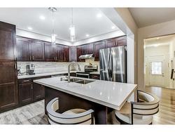 Beautifully maintained freehold townhome in one of Milton’s most desirable family communities.This 3-bedroom, 2.5-bath home offers parking for 2 vehicles and a bright, open-concept layout. The main floor features spacious living and dining areas, and a modern kitchen with granite countertops, centre island, stainless steel appliances, and backsplash.The private, fully fenced backyard is ideal for playtime or summer BBQs. Upstairs, the primary suite includes a walk-in closet and ensuite. Two additional bedrooms and a 4-piece bath complete the second level.The finished lower level provides extra living space with above-grade windows and a laundry room—perfect for a playroom, home office, or family retreat. Conveniently located near schools, parks, trails, shopping, Milton District Hospital, the GO Station, and easy access to Highways 401 and 407. A wonderful opportunity to call this family-friendly home your own.