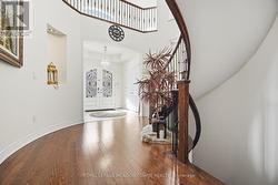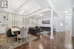 Absolutely stunning executive estate home positioned on the most exclusive and finest street in Churchill Meadows, quietly nestled on a prestigious cul-de-sac offering unmatched privacy and distinction. This meticulously maintained residence showcases a rare three-car driveway and two-car garage equipped with an EV charger, soaring ten-foot ceilings on the main level, nine-foot ceilings on the second level, and a professionally finished walk-out basement designed for elevated living. The home features four full bathrooms plus a powder room, smooth ceilings throughout, and convenient upper-level laundry with brand new machines. The chef's kitchen is crafted for luxury entertaining, featuring smart Samsung appliances under warranty, an elegant breakfast area with walk-out to a two-tier deck, and a gas hookup for seamless indoor-outdoor hosting. The grand primary retreat boasts a fireplace, two expansive walk-in closets, and a spa-inspired five-piece ensuite designed for ultimate relaxation. Secondary bedrooms are equally impressive, offering a Jack and Jill five-piece bath and a private ensuite suite complete with walk-in closet and three-piece bathroom. California shutters throughout provide timeless elegance and refined privacy. The lower level unveils a newly built apartment-style living space finished to an exceptional standard, highlighted by a massive home theatre, two executive offices, and direct walk-out access to the landscaped yard - ideal for extended family, guests, or sophisticated entertaining. Furniture available for purchase. A rare opportunity to acquire a grand, impeccably appointed luxury residence on the most coveted street in one of Mississauga's most sought-after communities. (id:7525)