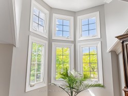 GEORGIAN-STRATFORD MODEL/2,888 Sq. Ft. Welcome to this sun-filled Georgian-Stratford model in the heart of Mississauga, where soaring ceilings and skylight create a striking first impression, filling the entry with natural light. Offering 2,888 sq. ft. above grade space, this beautifully crafted 4-BDRM brick and stone detached home is set on an impressive 40.28ft x 129.36ft lot with desirable south exposure and timeless workmanship throughout. The thoughtfully designed layout centres around an open-concept chef's kitchen and family room with fireplace, seamlessly extending to a rarely offered 3-season patio with skylight overlooking a generous backyard - perfect for everyday living and entertaining extending well beyond the warmer months. The second level features spacious bedrooms, including a primary retreat with high ceilings, bay windows, walk-in closet, and large ensuite. Three of the four bedrooms offer walk-in closets, adding excellent functionality for families. The basement provides a workshop, a rough-in for a bathroom, and custom built-in cabinetry for exceptional storage. What truly sets this home apart is the attention to detail and the meaningful upgrades that add long-term value: crown moulding throughout, reinforced joists and insulated basement ceilings for sound absorption when working in the workshop, recently painted 2025, upgraded laundry and powder room, new windows 2025 in family and dining rooms, primary bathroom, and garage, newer shed, 200-amp electric service, newer fences and gate (rear and west-side),newer garage door openers, heated garage, and security cameras for added peace of mind. Ideally located in one of central Mississauga's most sought-after neighbourhoods, close to excellent schools, Heartland Town Centre, Square One, transit, the future Hurontario LRT, and major highways. This is a home that delivers space, light, craftmanship, and everyday convenience - a place truly meant to be lived in and loved.