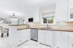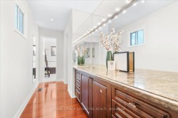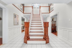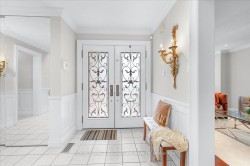 This exquisite residence is a stunning blend of timeless character and refined craftsmanship. The gourmet kitchen is a chefs dream, featuring granite countertops, premium Thermador appliances, and elegant glass cabinetry. Classic details such as wainscoting, crown molding, and custom columns add sophistication throughout. A bright 4-season conservatory overlooks mature trees, offering tranquil year-round relaxation. The expansive lower level boasts a well-appointed kitchenette with an island, a half bath, and a large open-concept living area perfect for entertaining or extended family. Upstairs, the primary suite impresses with two sitting areas, a spa-style ensuite with skylight, and a generous dressing room. Additional features include: Full security system with 6 exterior cameras & remote monitoring New roof (2021)New furnace & air conditioner (2019)A rare opportunity to own a truly remarkable home blending luxury, comfort, and time less design.