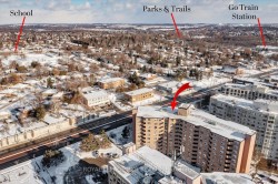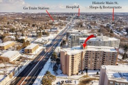 Beautifully upgraded and move-in ready, this bright 1 + 1 bedroom, 1-bath condo offers unbeatable value in central Newmarket. Featuring engineered hardwood floors throughout the living/dining area, main hall, and bedroom, plus updated baseboards and freshly painted with a modern paint colour. The open-concept living and dining space flows to a west-facing balcony with sweeping views and evening sunsets. Enjoy a spacious, modern kitchen with abundant cabinetry, lots of counter-space, a glass backsplash and new stainless steel fridge (2025). A large bonus space is ideal as a home office, walk-in pantry, or extra storage. Updated 4-piece bathroom, newer windows, and a new patio door enhance this condo is move-in ready. One outdoor parking space and one locker included. Prime location steps to Upper Canada Mall, GO Station, restaurants, shops, parks, schools, and just minutes to Hwy 404 or Hwy 400. Perfect for first-time buyers or those seeking affordable living in a thriving, walkable community. Pride of ownership throughout!