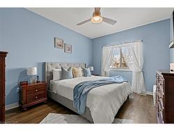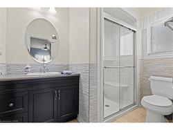 Stunning semi-detached townhome with double car garage in Niagara Falls! As you enter, you'll be greeted by elegant tile flooring in the foyer while the first bedroom on the right features beautiful engineered hardwood flooring and double closets. The kitchen showcases warm cabinetry accented by white subway tile backsplash, stainless steel appliances, granite countertops, and centre island with breakfast bar. The open-concept living and dining area is highlighted by vaulted ceilings, a cozy gas fireplace, and durable luxury vinyl plank flooring, creating an inviting space to relax or entertain. Sliding patio doors lead to a private deck and small grass area - perfect for pets! Enjoy maintenance-free, low fee condo living as snow removal and lawn care are both taken care of for you! The convenience continues with a main level laundry room located near the double car garage that offers direct access into the home. Overlooking the backyard, the spacious primary bedroom offers a walk-in closet and a beautifully finished ensuite with a walk-in shower. The fully finished basement extends your living space. The vinyl flooring continues through the family room with second gas fireplace and the 3rd bedroom with walk-in closet. There's also a 4 piece bath with a tub/shower combined plus a dedicated workshop area-ideal for hobbies or extra storage. This home truly combines comfort, style, and easy living in one perfect package!