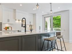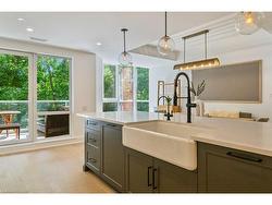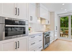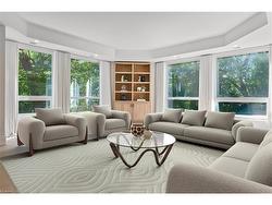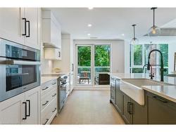 Located in Old Oakville, just steps from the GO station and Whole Foods, and a short stroll to boutique downtown shops, this 3-bedroom, 3.5-bath corner suite offers the perfect balance of urban convenience and peaceful neighborhood living.Nearly 3,000 sq ft of sunlight-filled space features wide plank white oak floors, a Chervin-crafted kitchen with new Miele appliances, and two private terraces for morning coffee or evening relaxation. A custom bookcase door reveals a hidden bonus room—ideal as a home office, screening room, or creative studio.The primary suite is a private retreat with its own terrace, sitting nook, walk-in closet, and spa-level marble ensuite. Two additional bedrooms with ensuites, full laundry with storage, and curated modern finishes complete the home.Building amenities include an indoor pool, fitness center, hobby room, party space, two premium parking spots, and two lockers—all within a calm, community-minded setting.