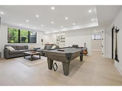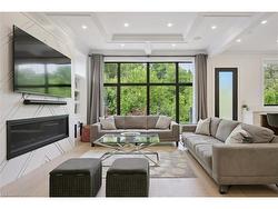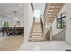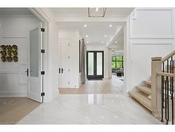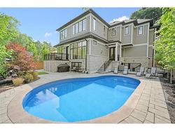 Welcome to this exceptional Keeren Design luxury residence nestled at a quiet cul-de-sac off Morrison Road in prestigious Southeast Oakville. Set on a lush, professionally landscaped ravine lot with creek views, this 2 year new custom-built home offers around 5,400 sqft. of refined living space, exuding elegance, unparalleled craftsmanship, and modern innovation throughout.Stepping in through the triple-pane mahogany front entry, soaring 10 ceilings on the main floor and 9 ceilings upstairs are complemented by white oak hardwood floors, extensive plaster crown moulding, custom wainscoting, and a dramatic open-riser staircase. The chefs kitchen is outfitted with double centre islands, top of the line appliances, Riobel fixtures, Zomodo sinks, Top Notch cabinetry, and a second fully equipped spice kitchen. Additional features include main floor office with custom cabinetry, accent walls through-out, a built-in mudroom, and floor-to-ceiling fiberglass windows framing the ravine.2nd floor is entrenched with natural light through the flared skylight with LED Light Valance, all bedrooms feature custom panel detail, crown moulding, and private ensuites with Riobel fixtures, large-format tiles, heated floors, and wall-hung toilets. The spa-like primary ensuite includes a steam unit and LED valance lighting. The walk-up basement boasts a 5th bedroom with private ensuite, a bar, large recreation space, and a stunning under-garage theatre room wired for Dolby Atmos.Enjoy the private resort-like outdoor living with in-ground pool, paving stone patios, armour stone accents, and a smart RainBird irrigation system, 6"x6" privacy fence, stone skirt. Smart home features include motorized blinds, Lutron lighting, 16 hardwired security cameras, Ecobee, Honeywell security, MyQ garage control, CAT6 wiring, and a smart irrigation systemall designed for seamless living in Oakvilles most coveted neighborhood.