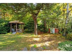 Set on a spectacular 0.566-acre lot, this property is enveloped by towering trees and lush gardens, and backing onto the tranquil Kings Park Woods. Offering nearly 25,000 sq. ft. of privacy and tranquility, this Muskoka-like retreat sits on one of Southeast Oakville's most prestigious streets. A generously sized interlocked driveway leads past the elegant front yard to an impressive 3-car garage. Lovingly maintained by the same family for over 40 years, the home is in pristine condition. The interior features expansive principal rooms, including formal living and dining spaces, a large kitchen with a breakfast area addition, and an open-concept family room—perfect for both day-to-day living and entertaining. A wealth of windows throughout brings in abundant natural light and frames beautiful views of the front streetscape as well as the forested backyard. With multiple fireplaces and hardwood floors throughout the main level, the home exudes warmth and charm. Convenient access to the garage is provided through the laundry room. Upstairs, the spacious primary suite is complemented by three double closets, built-in bookcases, a 3-piece ensuite, and additional flexible space. Two more generously sized bedrooms, along with a 4-piece bathroom featuring a jacuzzi tub, complete this level. The true highlight of the home is the backyard—a private oasis of mature trees, manicured gardens, and a well-positioned pool that basks in sunlight. A full irrigation system ensures the landscaping stays lush. Recent upgrades include a new roof, furnace, and electrical panel, while the garage boasts 50-amp service, ideal for a lift or electric vehicle charging. Walking distance to Oakville’s top public and private schools, including OT and St. Mildred’s, and just minutes to shopping, this property offers exceptional potential. Whether you choose to build a custom home or renovate and expand this charming residence, the large lot allows for endless possibilities.