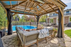 Welcome to prestigious Valleyview Court - an enclave of mature multi-million dollar homes with a parkette at your doorstep. 219 has an incredible 162 ft of frontage onto the court, with a circular driveway, double car garage with electric car charger, and over 140 ft of depth that offers green space for kids to play, a large pool to lounge beside and gardens to enjoy. This larger than average lot has it all. With 4+2 bedrooms, 4 bathrooms, and 2 kitchens this is a home you can grow into, or look forward to hosting in. The living space lets in lots of natural light with skylights and large windows giving clear sightlines from the kitchen through open concept dining room, towards the backyard and pool - great for keeping an eye on friends and family while they swim. The wood-burning fireplace in the living room offers a cozy retreat in the cooler months. With a large office off the main entry, this would be an excellent work-from-home property - imagine watching from your desk as clients pull up on your circular driveway. Upstairs all the bedrooms are all generously sized with large windows and closets. The primary has a walk-in closet + double closet and 5pc ensuite bathroom with jacuzzi. Downstairs the open concept rec room / games room / bar is a great place to relax with luxurious built-in cedar lined wine cellars - a gorgeous compliment to the space. The gym is separated with a glass wall to keep you focused during workouts and the new basement kitchen is fully equipped - great for in-laws or food prep on game nights. The walk-up also offers direct access into the back yard. The home has numerous recent upgrades and renovations including a brand new driveway, and your realtor can provide you with a feature sheet detailing the work. This is a wonderful opportunity to own a great home in a spectacular neighborhood, just a short walk from parks, the lake, schools, transit, and more.
