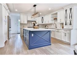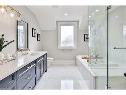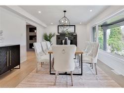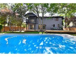 Exquisite Luxury Living in Southeast Oakville Stunning top-to-bottom renovation on a rare -acre estate lot in one of Oakvilles most prestigious neighborhoods. This 4+1 bed, 5.5 bath executive home offers nearly 5,000 sq. ft. of impeccably finished living space (3,618 sqft above grade), showcasing high-end design, superior craftsmanship, and exceptional attention to detail.Step into a grand two-storey foyer with soaring ceilings and elegant sight lines throughout the spacious principal rooms. The gourmet kitchen is equipped with premium Thermador appliances, including a 36 gas stove, and flows effortlessly into the open-concept living and family areas featuring a wood-burning fireplace in the dining room and electric fireplace in the family room.Upstairs, each of the four bedrooms features a private ensuite, plus a stylish second-floor laundry and bonus library/home office. The finished lower level offers a custom kitchenette/bar, 5th bedroom, designer 3-piece bath, large rec/media room, and ample storage perfect for entertaining or guest accommodations.Extensive upgrades include: new plumbing, electrical, pot lights, landscaping, deck, pool liner, exterior lighting, and fresh paint throughout. Oversized driveway with parking for 10+ vehicles.Located within top-tier school catchments: Oakville Trafalgar HS, Maple Grove PS, St. Vincent, Linbrook, SMLS.A truly turnkey luxury home offering space, style, and sophistication in an unbeatable location.