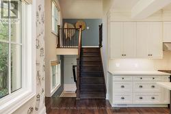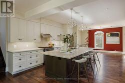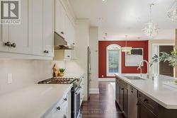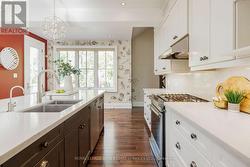 A remarkable lifestyle awaits in Oakvilles highly sought-after West Oakville community, where every convenience is just steps away. This exquisite custom raised bungaloft, redesigned in 2016 by Keeren Designs, backs directly onto the scenic Donovan Bailey Trail & is only a 3-minute walk to the Queen Elizabeth Park Community & Cultural Centre. Enjoy nearby Bronte Harbour, Lake Ontario, waterfront parks, & Bronte Villages shops & restaurants, all just minutes away, with quick commuter access to Bronte GO Station & the QEW/403. Showcasing undeniable curb appeal, this luxury home features a stucco facade with accent shutters, stone steps leading to a covered entry with columns & iron railings, interlocking stone walkways, professional landscaping with mature trees, a 9-zone irrigation system, & exterior cameras. The private backyard retreat offers upper & lower stone patios, gardens with armour stone accents, evergreens, & direct trail access. Inside, the residence boasts 2+3 bedrooms, 2.5 bathrooms, & a versatile loft perfect as a bedroom, home office, or studio. The 2016 transformation added a gourmet kitchen, wide-plank hardwood, designer tiles, custom built-ins, deep trim, built-in speakers, & expandable Control4 smart home automation. Designed for comfort & entertaining, the open-concept main floor offers 9 ceilings, family room with gas fireplace, spacious dining room, & chefs kitchen with custom cabinetry, quartz counters, oversized island with seating for 6, high-end appliances, & a breakfast area with walkout to the backyard. The primary suite showcases 2 walk-in closets & a spa-inspired 4-piece ensuite with soaker tub & oversized glass shower. The finished lower level includes a large recreation room, 3 bright bedrooms, 3-piece bath with heated floor & glass shower, oversized laundry, & abundant storage. Upgrades include furnace, HRV, roof shingles (2016), & recently, some main floor windows updated, & addition of a custom 8 solid wood front entry door. (id:7525)