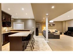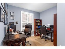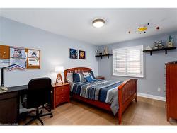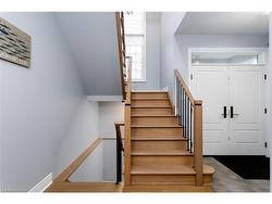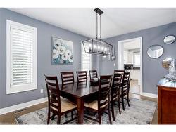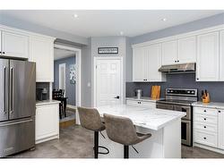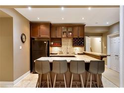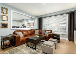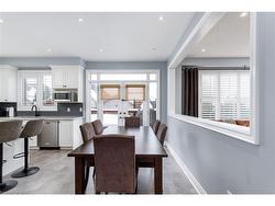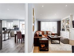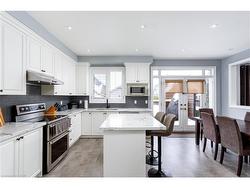 Welcome to Oakville's prestigious Joshua Creek community-where convenience, luxury, & top-rated schools meet. This custom Dawn Victoria built home meticulously maintained & tastefully updated 4-bedroom, 3.5-bathroom family home is located within the Iroquois Ridge High School catchment & just a short walk to the Iroquois Ridge Community Centre. Everyday essentials, shopping, & dining are minutes away at the Uptown Core, while commuters will love easy highway access. The home's elegant stone & stucco façade is complemented by manicured gardens, soffit lighting, & a patterned concrete walkway leading to the covered front entrance. Inside, discover a customized layout with 9-foot main-floor & basement ceilings, a refinished staircase, refinished hardwood & engineered hardwood flooring (2025), pot lights, & California shutters. The spacious dining room is perfect for hosting, while the inviting family room features wall-to-wall custom cabinetry surrounding a cozy gas fireplace. The renovated kitchen (2021) is a chef's dream, with quartz countertops, white cabinetry with crown mouldings, an island with a breakfast bar, a walk-in pantry, & stainless steel appliances. The breakfast area opens to a large deck with a full-width electric awning, an expansive patio ideal for entertaining, & a gas hookup for barbecuing. Upstairs, you'll find 4 generous bedrooms, a convenient laundry room, & 2 full baths, including a luxurious 5-piece primary ensuite with a corner soaker tub & separate shower. Professionally finished basement offers exceptional recreation room, custom bar with granite counters, gym, office/bedroom & a 3-piece bathroom. Additional highlights include a re-shingled roof (2025), a double garage with epoxy flooring & inside entry, & an irrigation system. This stunning property blends timeless craftsmanship, modern upgrades, & an unbeatable Oakville location-perfect for families seeking comfort, sophistication, & convenience in Joshua Creek real estate.