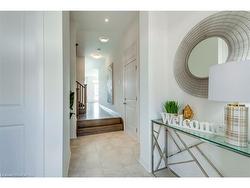 Feels Like a Detached Home! Premium Corner Lot with Ravine & Pond Views. Brand new, never lived in luxury end-unit townhome on one of the best lot in the community - corner exposure backing onto a tranquil ravine and pond. Offering 2,762 sq ft of above-ground living space across four finished levels, this bright and spacious home feels like a detached! Features 4 bedrooms, 3 full baths, 2 powder rooms, and high-end finishes throughout. The open-concept main floor boasts 10-ft ceilings, oversized windows, a modern kitchen, and walkout access to the private backyard. The second floor includes a primary suite with walk-in closet and 4-pc ensuite, two additional bedrooms with vaulted ceilings, a shared 4-pc bath, and laundry. The third-floor retreat offers a second private primary suite with spa-like ensuite and a balcony with stunning ravine views. A fully finished basement with powder room adds flexibility for a rec room, office, or 5th bedroom. Hardwood flooring, neutral-tone carpet in bedrooms, and 9-ft ceilings on the second floor enhance the luxurious feel. Located minutes from Hwy 5, 407, and 403, this smart home combines style, comfort, and convenience in an unbeatable location.