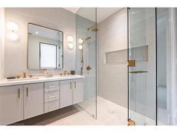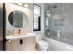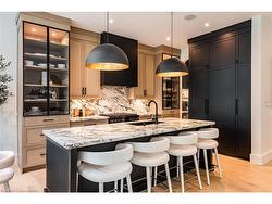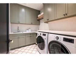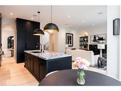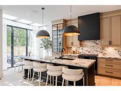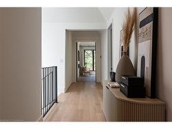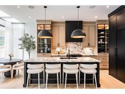 Located in one of Oakville's most desirable pockets this new custom home creates a stylish atmosphere that will impress even the most detailed buyer. Architecture by Hicks Design Studio and built by Gasparro Homes this home features over 3,100 square feet above grade as well as a rare double car garage. The transitional design layered with soft textures and high-end light fixtures make it the ultimate retreat! The foyer provides a clean sightline through the rear of the home which highlights the near floor to ceiling windows. Double metal French doors, with beveled privacy glass, lead you into the home office with wall-to-wall cabinetry. From the dining room, walk through the butlers pantry into the open concept kitchen and family room. The kitchen, by Barzotti Woodworking, is extremely functional and features white oak cabinetry with black/glass accents, an oversized island, and cozy breakfast nook. The second level of this home has a bright and airy feel with gorgeous skylights and semi-vaulted ceilings in every room allowing for extended ceiling heights. The primary suite spans the rear of the home with stylish ensuite and large walk-in closet with custom organizers. Two additional bedrooms share access to a jack-and-jill washroom. The final bedroom upstairs enjoys its own private ensuite and has a walk-in closet. The lower level of this home features 10ft ceilings and radiant in floor heating. The recreation room, with custom wet bar overlooks the glass enclosed home gym. A fifth bedroom along with full washroom is also found on this level. This level is finished off with a cozy home theatre. This home also features two furnaces and two air conditioners for ultimate home comfort. The private rear yard is freshly landscaped with a full irrigation system as well as landscape lighting. The back patio features retractable screens and naturally extends the indoor living space. The ultimate turn-key package.