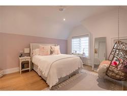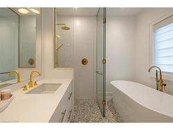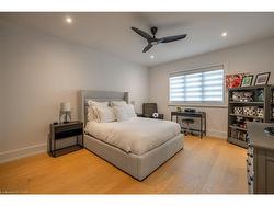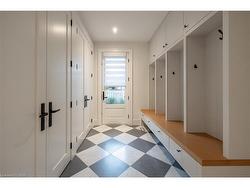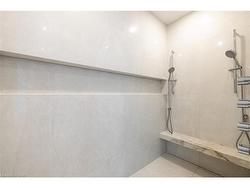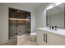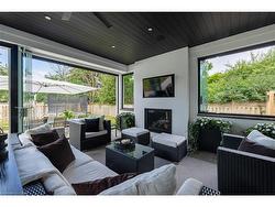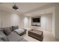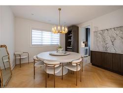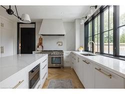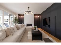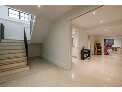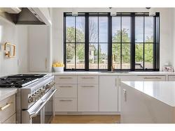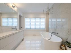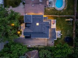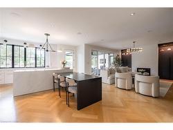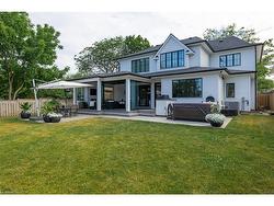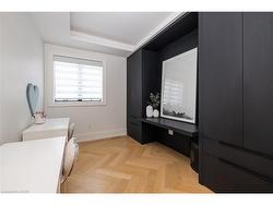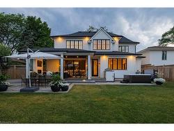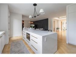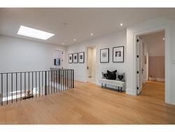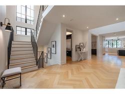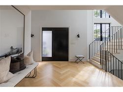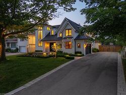 Situated on a premium 75' x 150' lot in the heart of West Oakville, this custom-built residence offers 3,625 square feet of thoughtfully curated living space. Completed in 2020 by Scott Ryan Design Build, the home showcases timeless architectural design, superior craftsmanship, and a floor plan tailored for modern family life. The main floor impresses from the moment you step inside. Herringbone-patterned engineered hardwood floors, soaring ceiling heights, and custom millwork by Misani Custom Design create a warm yet elegant backdrop. A dedicated office at the front of the home provides a quiet workspace, while the formal dining room with adjacent servery is perfect for entertaining. The heart of the home is the expansive kitchen where custom cabinetry, premium appliances, and a large island flow seamlessly into the great room. A thoughtfully designed mudroom with built-ins and side entry adds everyday functionality. Upstairs, the primary suite is a private retreat featuring a spacious, custom-designed walk-in closet and a luxurious ensuite with double vanity, freestanding soaker tub, and oversized shower. The two additional bedrooms include private ensuites and custom built-ins, offering privacy and comfort for family and guests alike. A fully outfitted laundry room finishes off this level. The fully finished lower level offers nearly 1,900 square feet of additional space with radiant in-floor heating and polished concrete floors. A large recreation area, fourth bedroom, full bathroom with steam shower, second laundry and ample storage make this level both versatile and functional. Step outside to a backyard oasis designed for year-round enjoyment. A covered rear porch with glass enclosure acts as a true four-season extension of the home, while the built-in BBQ, hot tub, and landscaped grounds create an idyllic setting for outdoor entertaining. An exceptional offering in West Oakville, this home delivers style, substance, and space in equal measure.