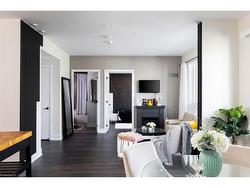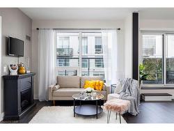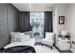The stunning Cedar model, a 2-bedroom, 2-bathroom residence, spans 802 sq. ft. of contemporary living space with an additional 200 sq. ft. terrace equipped for barbequing & alfresco dining. Only 7th floor suites allow for BBQ. This posh suite features nine-foot ceilings, wide-plank laminate flooring, custom-designed cabinetry, quartz countertops, island, chic lighting, custom blinds & high-end kitchen appliances. The open-concept kitchen & living areas flow seamlessly to the terrace, offering exciting courtyard views and offers freestanding fireplace. The primary bedroom boasts a luxurious 3-piece ensuite with an oversized shower, while the second bedroom enjoys access to a lavish 4-piece bath with a deep soaker tub/shower combination. This suite promises a fabulous lifestyle in every detail, complete with in-suite laundry & underground parking, even for visitors. Ideally located near Oakville Hospital & major highways, with easy access to Bronte GO Station, The Branch ensures convenience is always within reach. Immerse yourself in the sophisticated, cosmopolitan lifestyle offered by Branch Condominiums, a modern architectural gem nestled in the very desirable community of Palermo. This newly built development, consisting of two eight-story towers connected by a walking bridge, epitomizes refined living with stellar amenities designed for relaxation & well-being. At its core is a visually stunning courtyard & a grand three-story lobby leading to luxurious spaces like a state-of-the-art gym, yoga studio, rain room, steam room, media lounge, cocktail bar & a resort-style pool with a captivating linear gas fireplace. Credit check & references. No pets and no smoking. Landlord will consider leasing furnished.