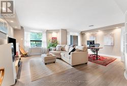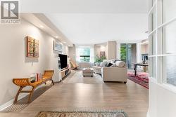 Tastefully renovated and beautifully maintained, this 2-bedroom, 2-bathroom condo offers the perfect blend of urban convenience and natural beauty in the vibrant community of Mechanicsville. Designed for effortless living, its open-concept layout and thoughtful finishes create an inviting space that's truly move-in ready. Neutral laminate and tile flooring extend throughout uniting the principal spaces. The spacious living and dining area, accented by recessed lighting, opens to a generous balcony framed by lush greenery-perfect for enjoying peaceful westerly sunsets. The kitchen impresses with rich walnut-toned cabinetry extending to the ceiling, granite countertops, tile backsplash, stainless steel appliances, and a cozy breakfast nook. The two bedrooms are generously sized, including a serene primary suite with dual double closets and a 3-piece ensuite featuring granite counters and a walk-in shower. A second full bathroom, also with granite finishes, and a convenient in-unit laundry/storage room complete the layout. Additional highlights include a new air conditioning unit (2024), one parking space, and a storage locker. Residents benefit from on-site amenities such as an exercise room, sauna, rooftop terrace, and party/meeting room-adding everyday convenience and lifestyle appeal. Perfectly positioned in a tranquil yet connected enclave, this home places you just minutes from everything-Wellington Village's acclaimed cafés, restaurants, and shops, the GCTC and the bustling Parkdale Market. The Ottawa River waterfront, with its scenic walking, jogging, and cycling pathways, is just steps from your door, while Tunney's Pasture Transit Station is a quick 10-minute walk away. (id:7525)
