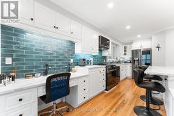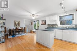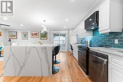 Discover an exceptional opportunity in Westboro with this versatile high-ranch bungalow, featuring a complete in-law suite with its own entrance and living space that rivals the main home in size and comfort. Set on an oversized corner lot in one of Westboro's most desirable neighbourhoods, this distinctive property is ideal for multi-generational living, investment, or future redevelopment-with R4 zoning further expanding the potential of this remarkable opportunity. The main residence, beautifully renovated in 2022, showcases new hardwood flooring throughout the main level and laminate flooring on the lower level. The outstanding kitchen impresses with sleek quartz countertops, an eye-catching backsplash, extended cabinetry with pantry and desk area, a central island with seating and added storage, and new stainless appliances. Patio doors open to a deck and fenced side yard, perfect for outdoor enjoyment. The kitchen opens seamlessly to a bright, inviting living area, while a well-placed powder room and California shutters add comfort and style to the main level. On the lower level are two spacious bedrooms, including one with a large closet & storage access, and a 4-pce bathroom.The in-law suite-accessible from both levels or via its own private entrance-provides exceptional versatility, featuring a generous kitchen and dining area, two bedrooms, and an updated 3-pce bath with heated floors. Hardwood flooring extends across the main level, with the exception of one bedroom finished in laminate. The lower level offers a large family room with recessed lighting and a spa-inspired 4-pce bathroom with a jetted tub. Shared laundry and utility areas ensure practicality, while a single attached garage and the prime Westboro location add further appeal. Steps to parks, top schools, shops, cafés, the new LRT station, and the Ottawa River waterfront pathway, this property offers flexibility, function, and future potential in one of Ottawa's most coveted urban settings. (id:7525)