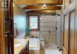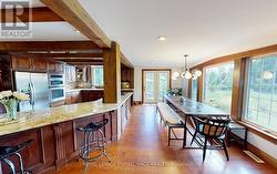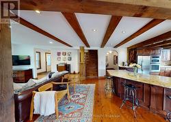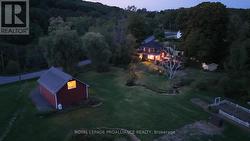 Nestled in the drumlins North of Belleville, just 35 minutes from PEC, lies Halloway, a hamlet steeped in history and rural charm. Once a bustling stop along the Grand Junction Railroad, it was home to general stores, mills, and artisans. Today, that same sense of heritage endures in the character homes that dot the landscape. Here, the land rises and falls with striking elevation, offering dramatic views and a rare sense of seclusion so close to the city. Set on more than 2 acres of this countryside is a circa 1920 farmhouse, a timeless two-story that radiates warmth. A welcoming wrap-around porch invites you to pause and take in the views, while a gentle creek winds through the property, joined by a tranquil pond. At the rear, a tucked-away fire pit creates the perfect spot for campouts or evenings beneath the stars. Inside, rustic details pair beautifully with modern touches. Exposed beams, stone accents, and wood plank flooring bring charm throughout. The open-concept main floor flows easily from living and dining into a generous kitchen with a massive island, vaulted ceilings, and a cozy wood-burning stove. Step out to the multi-level patio - an entertainers dream with built-in BBQ, perennial gardens, and even a playful tee box for practicing your short game. The main floor also offers a den or office connected to a spa-inspired bath with Jacuzzi tub and glass-and-tile shower. Upstairs, three bright bedrooms continue the inviting feel, with the primary enjoying semi-ensuite access. A 40' x 26' heated detached garage with 11' ceilings, loft bar and lounge, its own driveway, and separately metered 200 amp service is ideal for a contractor, hobbyist, or home business, with potential for a secondary dwelling. Just two minutes away, the Trail of Two Lakes links Belleville to Madoc, offering miles of hiking, biking, snowmobiling, and ATV adventures. Recent updates include a new septic system (2020) and a wood stove chimney (2021). (id:7525)