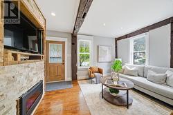 Perfect for FIRST TIME BUYERS, ready to own a freehold home or for those looking to DOWNSIZE without compromise - this home delivers it all. This enchanting semi-detached home is one that perfectly blends sophisticated charm with timeless character. Nestled in the highly sought-after Mill Pond community, this residence sits on a rarely offered 153 ft deep lot featuring a fully fenced backyard and a picturesque front porch - ideal for enjoying quiet mornings or evening sunsets. Step inside to a warm and inviting family room exuding comfort and character, highlighted by a large window, pot lights, and a cozy electric fireplace. Offering a seamless flow from the family room to the dining area, creating an open and connected main floor ideal for both everyday living and entertaining. Throughout the home, century-old hand-hewn beams and refined hardwood floors on the main level add architectural depth and rustic authenticity. The bright, updated kitchen is both functional and stylish featuring a breakfast bar, quartz countertops, ample storage space, a side entrance, and a walk-out to your private backyard retreat with a deck and patio perfect for entertaining or simply creating peaceful moments surrounded by nature. A thoughtfully located powder room completes the main level. Upstairs, discover a bright and open second level that offers versatility and charm. The primary bedroom includes a walk-in closet, while the second bedroom provides comfort for family or guests. A sun-filled open area with a window offers the perfect space for a home office or den, combining elegance with functionality. The generously sized main bathroom is impressive and highly functional - a true luxury for daily living. Located just steps from vibrant shops, the Richmond Hill Centre for the Performing Arts, top-rated schools, and scenic Mill Pond walking trails, this home delivers the best of community, character, and convenience making it an ideal choice for families and professionals alike. (id:7525)