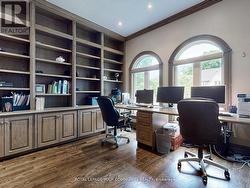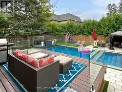 Welcome to 5 Trilogy Court an executive residence nestled on a quiet, sought-after cul-de-sac in the heart of South Richvale, one of Richmond Hills most prestigious neighborhoods. This stately 4+1 bedroom home offers timeless elegance, custom finishes, and a resort-like backyard complete with a sparkling swimming pool and hot tub. Step through the grand foyer into a thoughtfully designed layout with refined living spaces ideal for both everyday comfort and upscale entertaining. Main-floor library, a warm, inviting retreat featuring custom floor-to-ceiling built-in bookcases and a two-way fireplace shared with the adjoining dinning room, creating a seamless atmosphere of sophistication and warmth. The gourmet kitchen is a chefs dream, complete with Quartz countertops, high-end appliances, and ample cabinetry opening seamlessly to a bright breakfast area and expansive family room overlooking the private backyard oasis. Formal living and dining rooms provide generous space for entertaining and family gatherings. Upstairs, four spacious bedrooms await, including a luxurious primary suite with a walk-in closet and a spacious laundry room. The finished basement includes a guest/nanny suite, media area, sauna and additional entertaining space. Step outside to enjoy your private paradise with a professionally landscaped yard and in-ground swimming pool, ideal for summer relaxation and entertaining Located near top-rated schools, boutiques, and golf courses, this home combines luxury, location, and lifestyle. (id:7525)